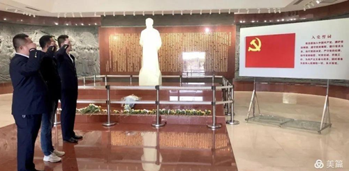 當(dāng)大家踏上象征李大釗革命生涯的38級(jí)臺(tái)階,走進(jìn)紀(jì)念館,步入威嚴(yán)、莊重的紀(jì)念館大廳,在李大釗塑像前整齊列隊(duì)、莊嚴(yán)肅立,集體默哀深深鞠躬,表達(dá)緬懷和敬意。之后,面對(duì)鮮紅的黨旗,唐山公交基層黨支部書記帶領(lǐng)兩名預(yù)備黨員緊握右拳,莊嚴(yán)宣誓。支部黨員干部集體重溫了入黨誓詞,在誓言中共同表達(dá)了對(duì)共產(chǎn)黨的無比忠誠和對(duì)革命精神的無比敬佩。