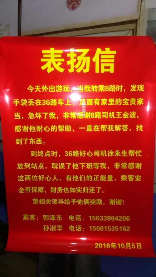次日郭先生夫婦特意送來表揚信,表示感謝。盡管事隔一天,但郭先生的心情仍然很激動,并且說話語速也比較快,可以看出他丟失的東西是何等重要。